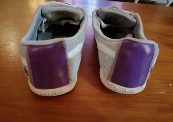 En très bon état général. Baskets Reebok femme vintage en toile et simili cuir, coloris gris et violet. petite tache peu visible car à l'intérieur Pointure 36 ⚠️ Je fais des envois via tous les points relais sauf Colissimo !!! #reebookvintage