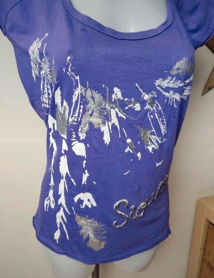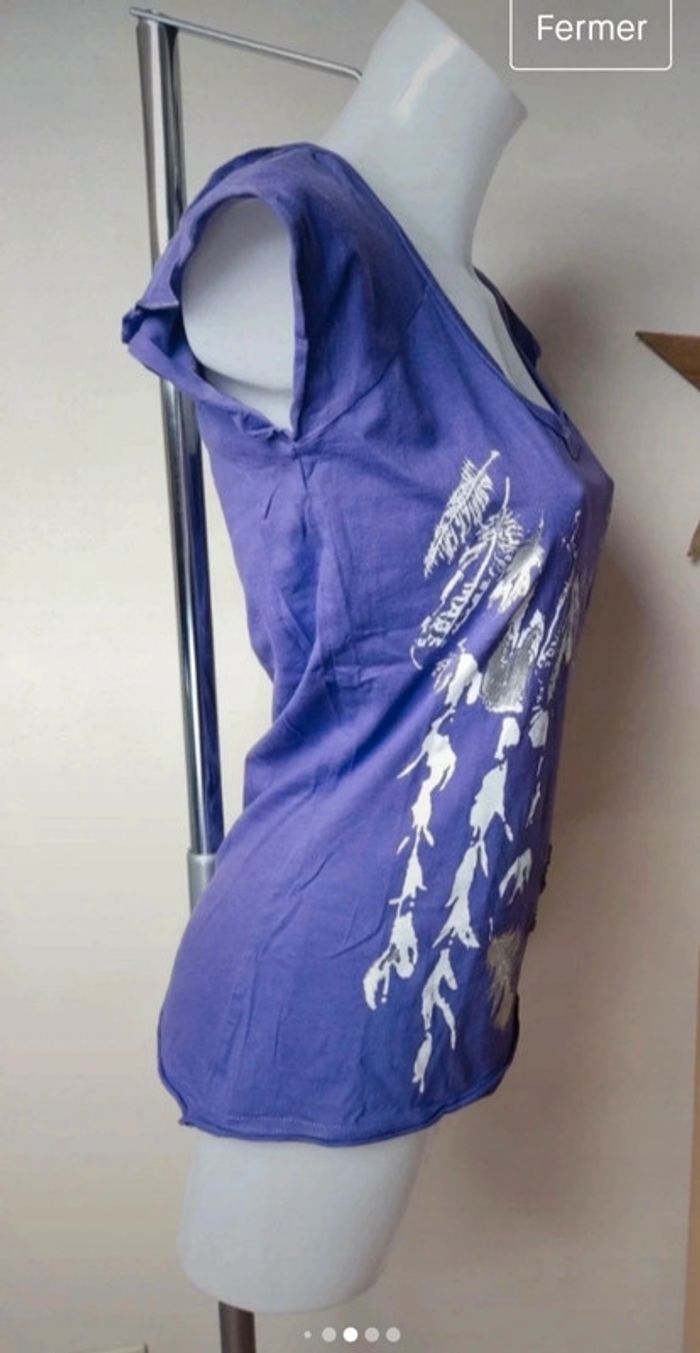 En excellent état, porté une ou deux fois. Tee shirt Jennyfer. Taille L. Coloris violet, motifs blanc et argenté Perles au niveau des écritures. ⚠️ Je fais des envois via tous les points relais sauf Colissimo !!! #femme40memsdu95 #teeshirtjennifer40