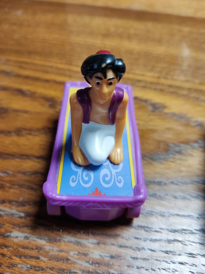 En très bon état. Lot de 3 Figurines Aladin sur leur tapis Volants, petites roues à friction, marque Disney. ⚠️ Je fais des envois via tous les points relais sauf Colissimo !!! #disney #aladin