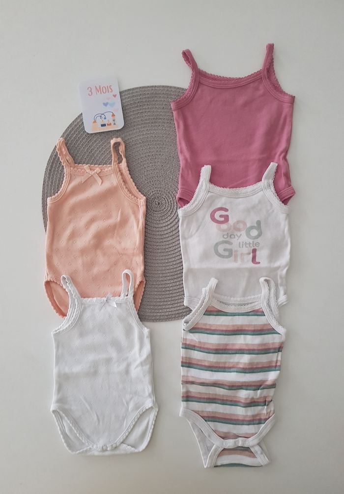 Lot de 5 Bodies Bretelles Taille 3 Mois