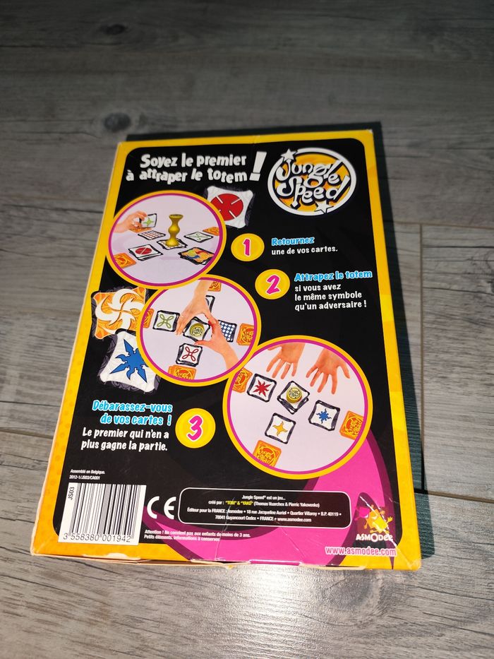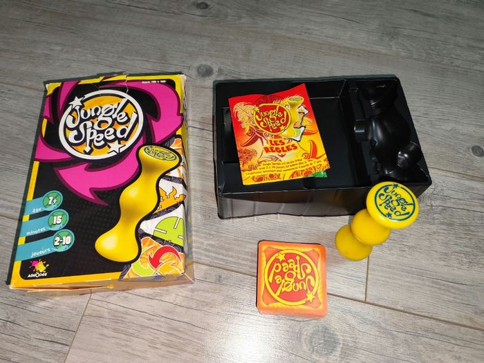 Voici le jeu Jungle Speed, un classique des jeux de cartes rapides et amusants ! Ce jeu de réflexes et d'observation est idéal pour les soirées entre amis ou en famille. L'objectif est simple : être le plus rapide à identifier et à saisir la carte identique à celle retournée au centre. Avec ses illustrations colorées et ses règles faciles à comprendre, Jungle Speed saura divertir petits et grands. Que vous soyez débutant ou expert, ce jeu vous fera passer un moment convivial et plein de rires. N'hésitez pas à me contacter si vous avez d'autres questions ! - Jeu de cartes rapide et amusant - Illustrations colorées et thème jungle - Convient aux joueurs de tous niveaux - Idéal pour les soirées entre amis ou en famille - Règles simples et faciles à comprendre Très bon état