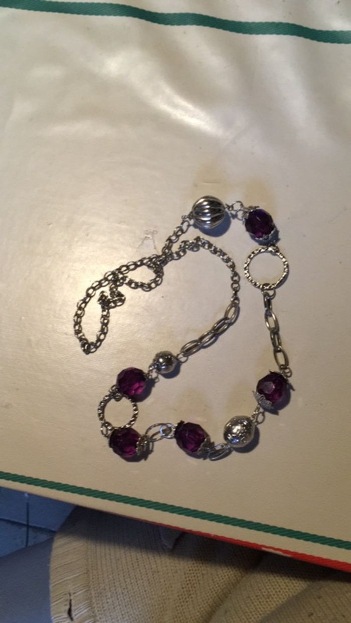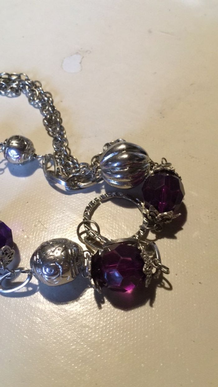 Sautoir de 41 cm perles argentées et violette très bon état - photo numéro 3