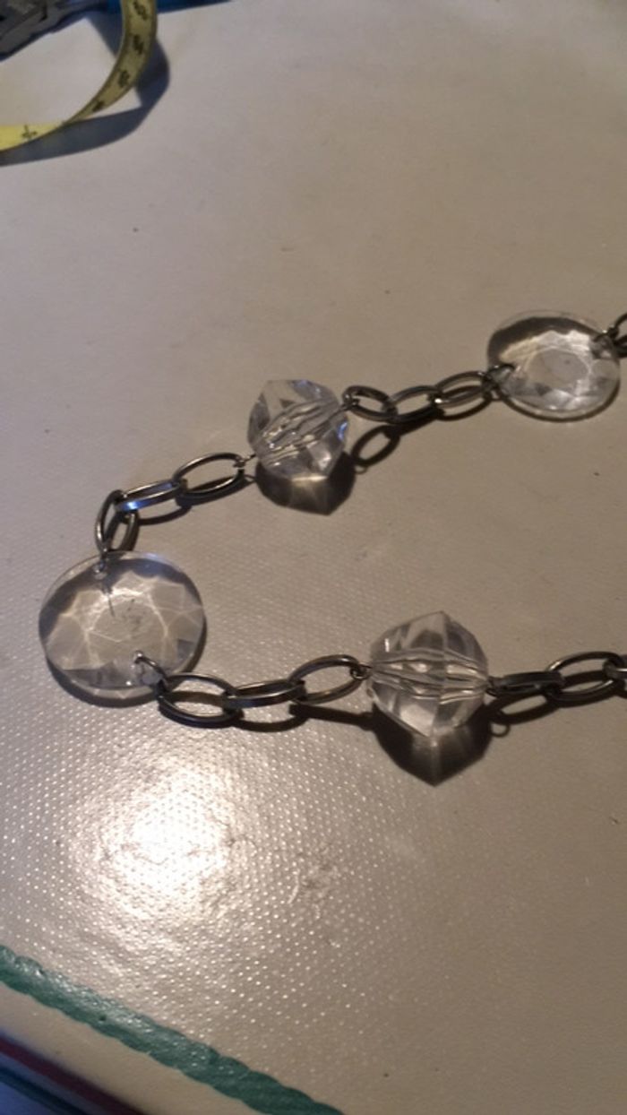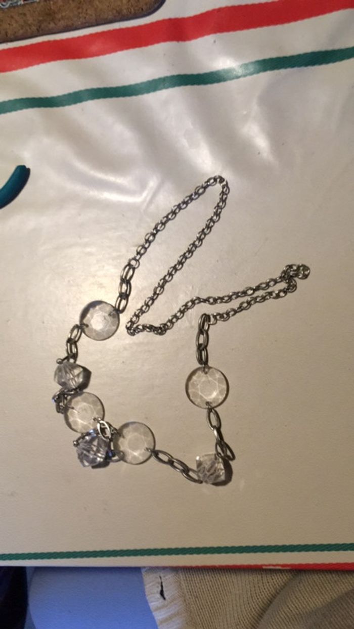 Sautoir très bon état de 49 cm perles plastiques transparentes