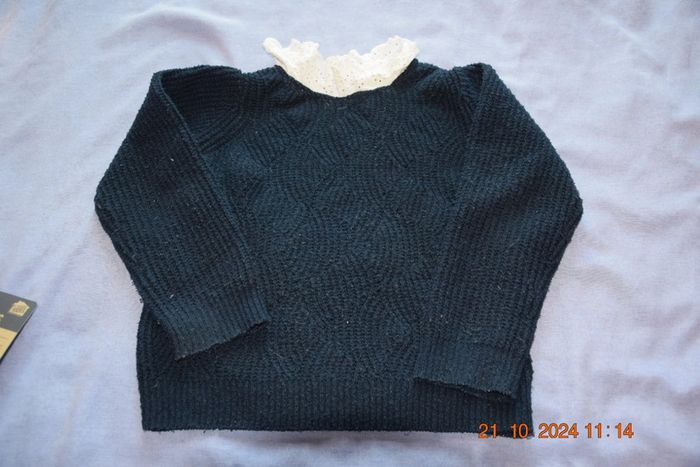 Pull fille 5ans Col en dentelle Kiabi Bleu marine #mamikro2fille #fille5ans #pullfille5ans