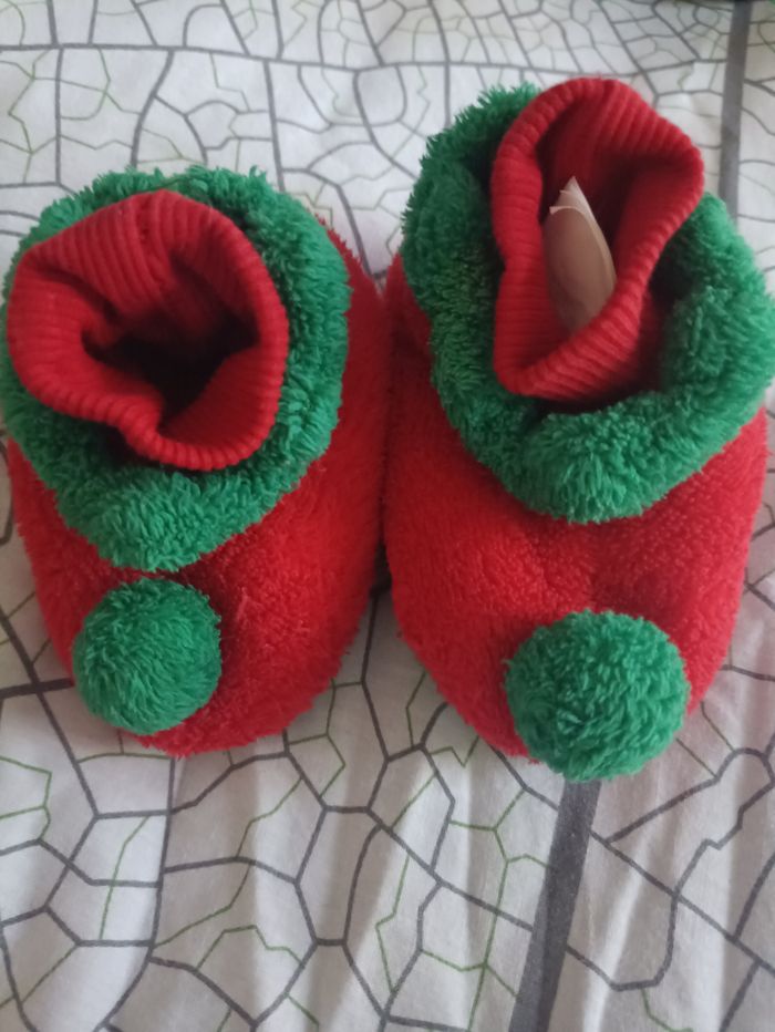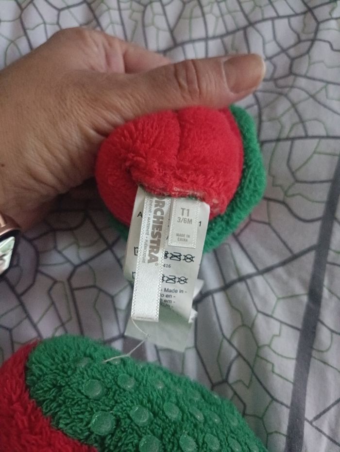 Chausson de Noël lutin pour bébé en très bon état marque orchestra taille 1 3/6 mois .