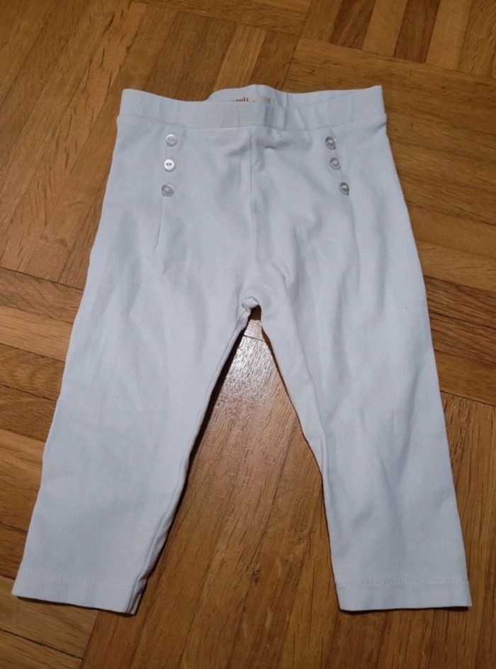 Legging blanc avec petits boutons décoratifs sur le devant (style marin). Tissu léger, parfait pour l'été