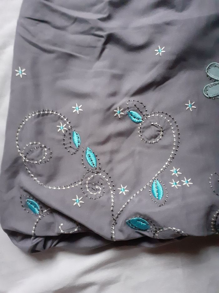 Robe grise bouffante avec boutons fleurs turquoises motif fée - photo numéro 2