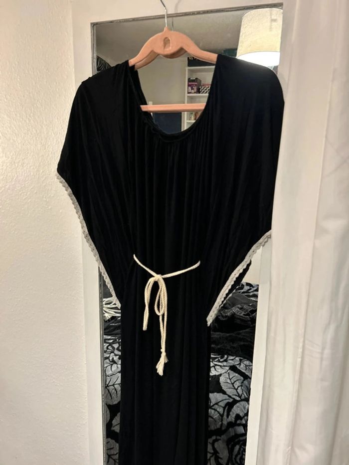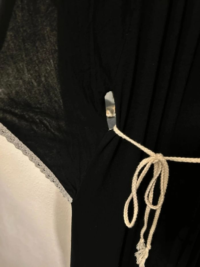 Robe sans manches longues on voit comme des trou sur les photos, c’est pour faire passer la ceinture, vous pouvez du coup mettre n’importe quel style de ceinture