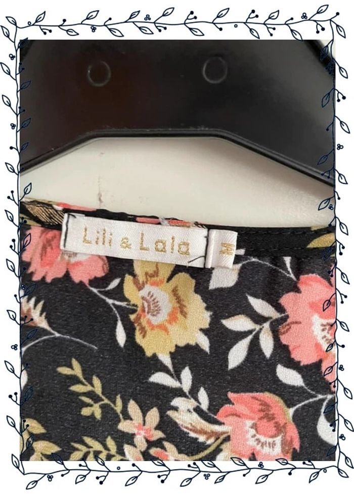 🌸 Blouse noire à fleurs et à motifs dorés 🌸 Taille M 🌸 Marque Lili & Lala 🌸 Très bon état