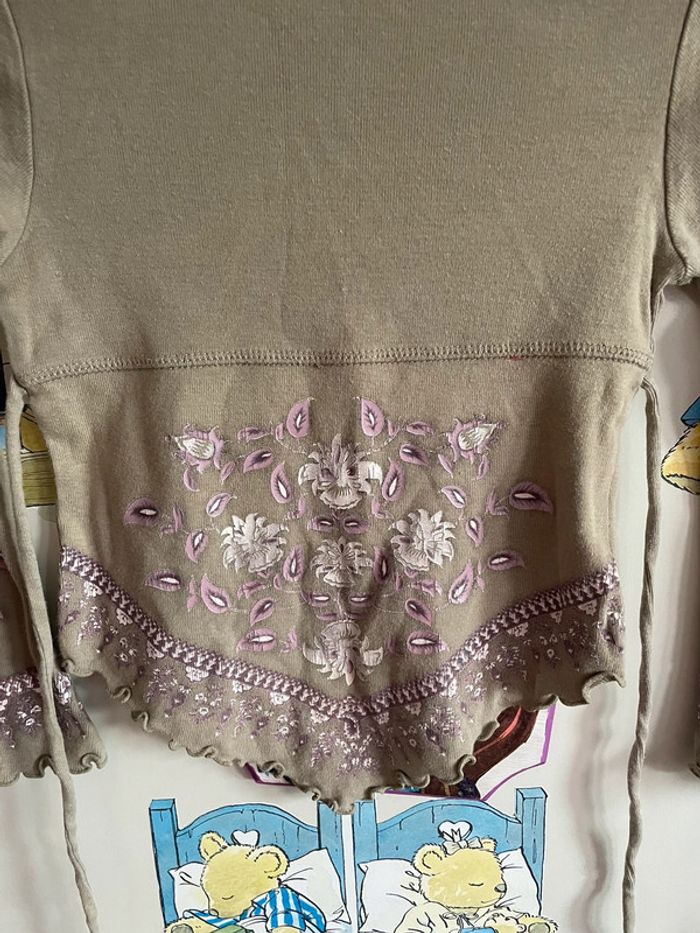 Tee shirt à manches longues évasées kaki à motifs, taille 8 ans, marque Caprice de Fille - photo numéro 2