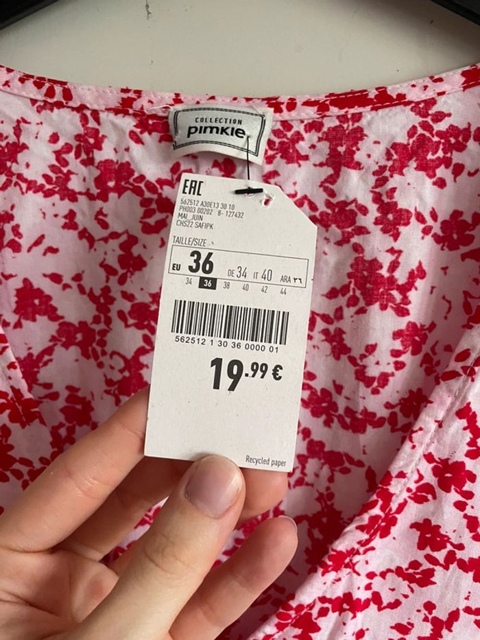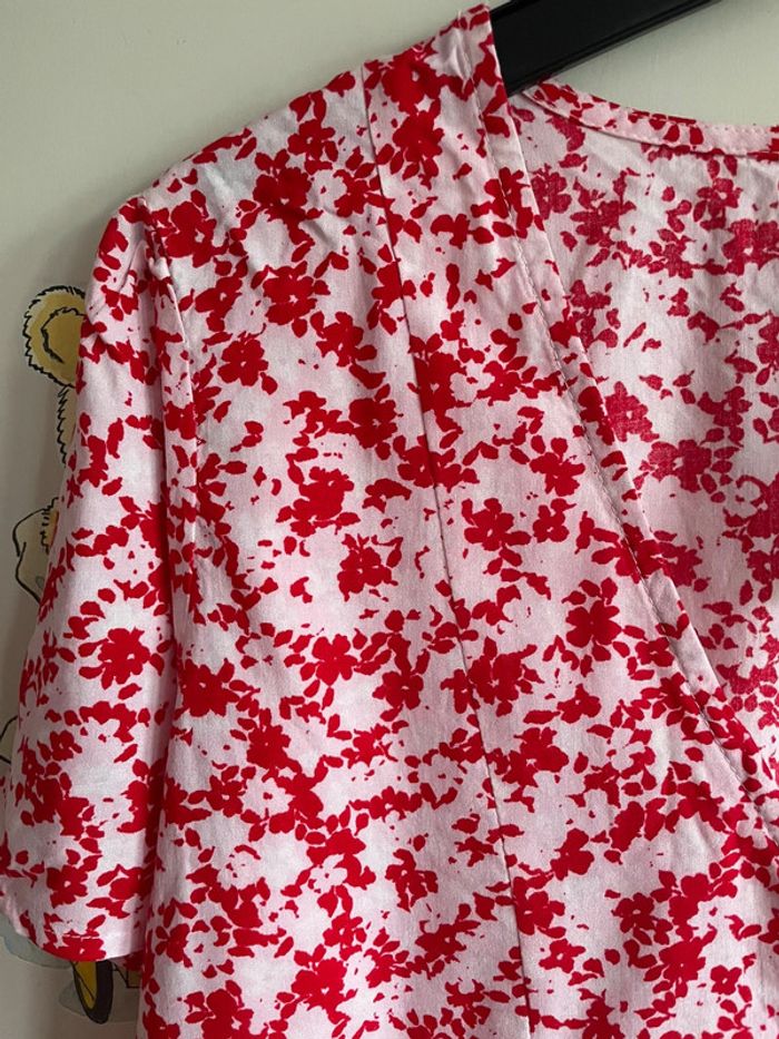 🌸 Blouse à manches courtes à motifs rouges 🌸 La couleur de fond tire sur le rose pâle 🌸 Taille S 🌸 Marque Pimkie 🌸 Neuve avec étiquette
