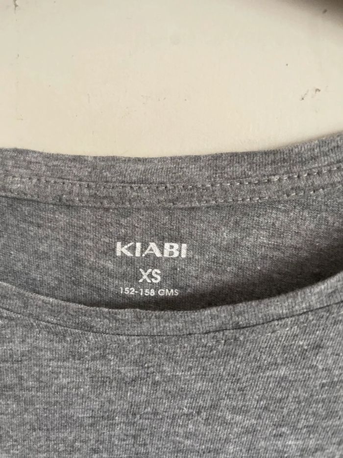 Tee shirt gris à manches courtes avec volants aux manches, taille Xs, marque Kiabi - photo numéro 2