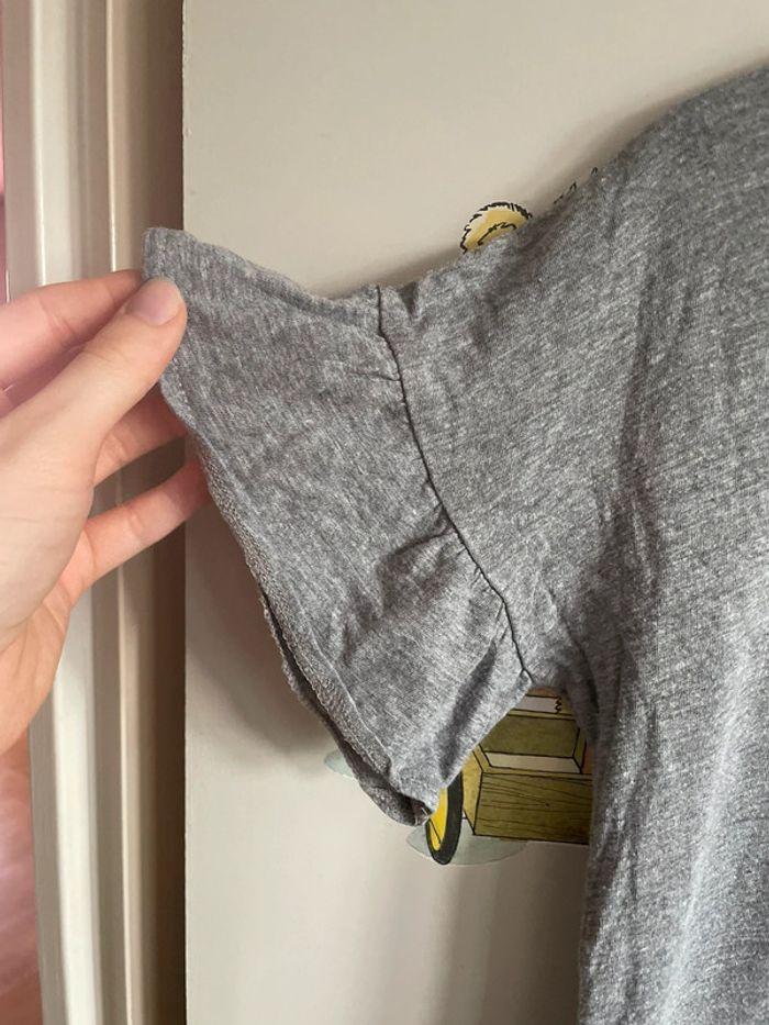 Tee shirt gris à manches courtes avec volants aux manches, taille Xs, marque Kiabi - photo numéro 3
