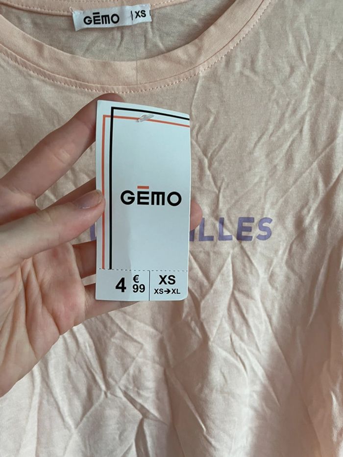 🌸 Tee shirt à manches courtes pêche-abricot avec inscription bisous les filles 🌸 Taille Xs 🌸 Marque Gemo 🌸 Neuf avec étiquette