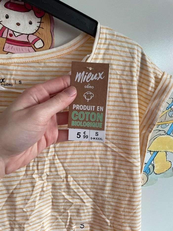 🌸 Tee shirt à rayures blanches et jaunes 🌸 Taille S 🌸 Marque Gemo 🌸 Neuf avec étiquette