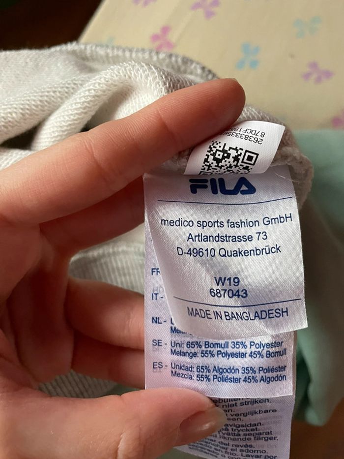 🌸 Pull vert, gris et blanc 🌸 Taille XXS 🌸 Marque Fila 🌸 Petit point de couleur partis sur le motif, voir photo 3