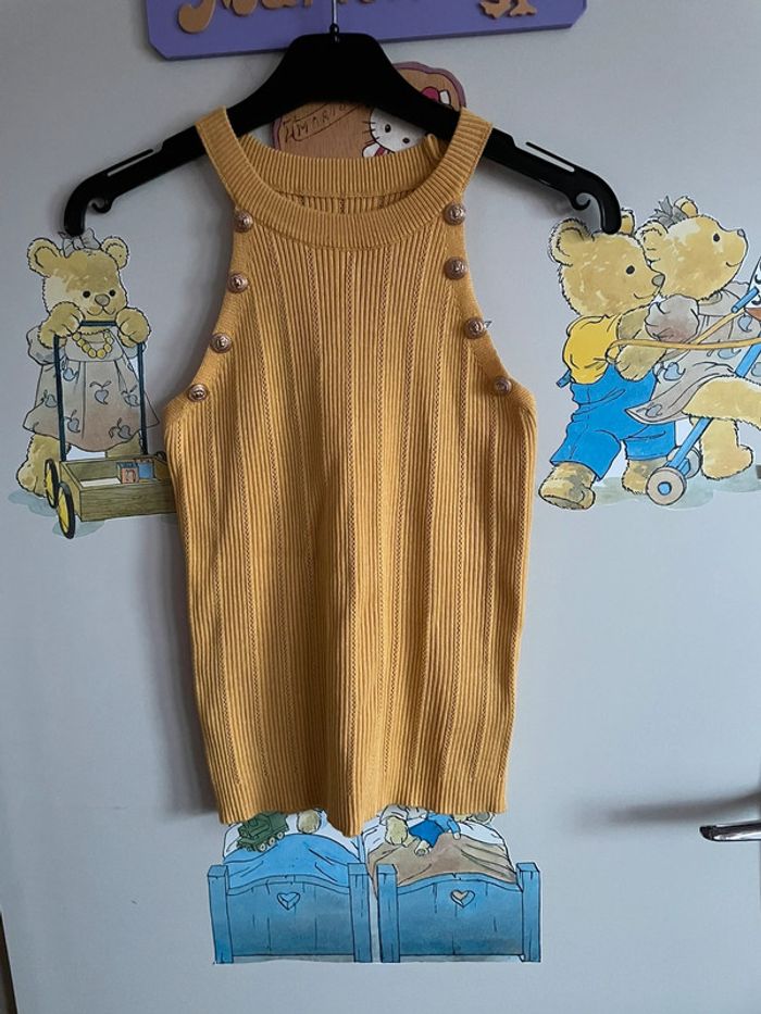 🌸 Top jaune avec faux boutons 🌸 Taille unique, il n’y a pas l’étiquette de taille 🌸 Boutique indépendante
