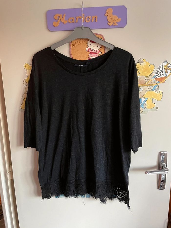 Tee shirt à manches 3/4 noir à paillettes, taille S,  marque Kiabi.