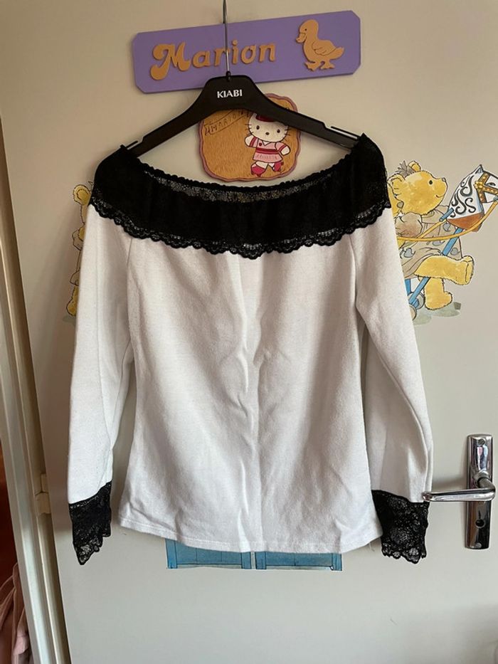 Pull blanc et noir, taille 36. Il n’y a pas l’étiquette de taille.