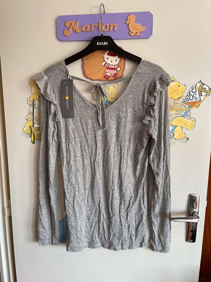 Tee shirt gris à manches longues, taille S, marque Cache Cache. - photo numéro 1