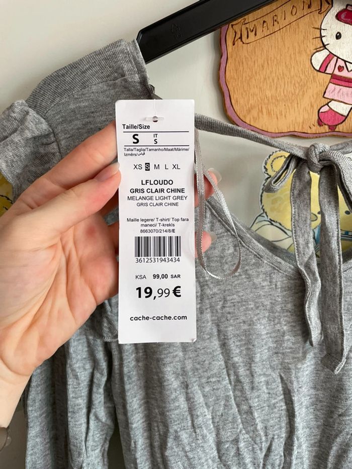 Tee shirt gris à manches longues, taille S, marque Cache Cache.