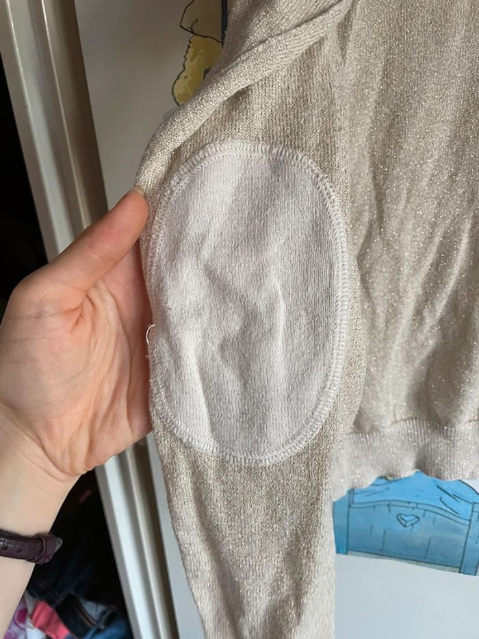 Pull beige à paillettes et filaments dorés, taille S, marque Le Temps des Cerises. - photo numéro 3