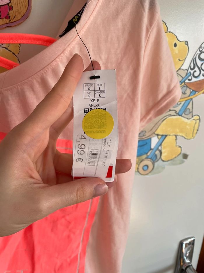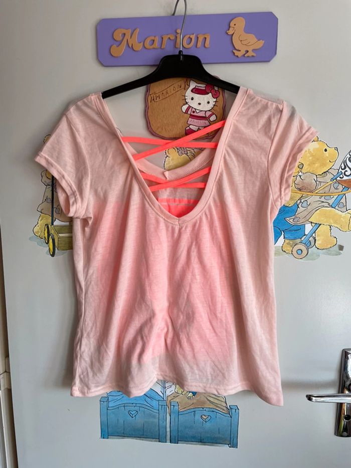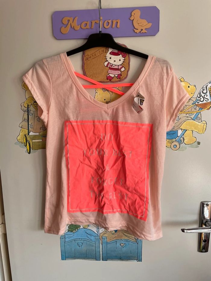 Tee shirt à manches courtes rose à motifs, taille S, marque Mim.