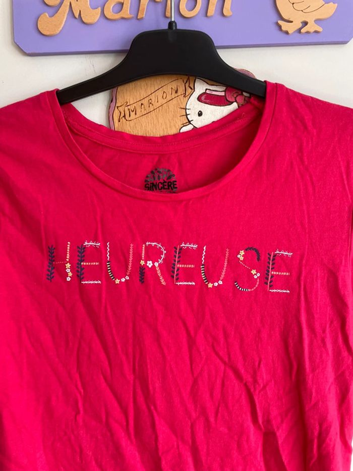 Tee shirt à manches courtes rose à motifs, taille S, marque Sincère. - photo numéro 2