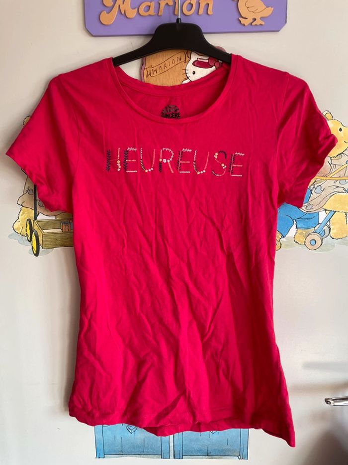 Tee shirt à manches courtes rose à motifs, taille S, marque Sincère. - photo numéro 1