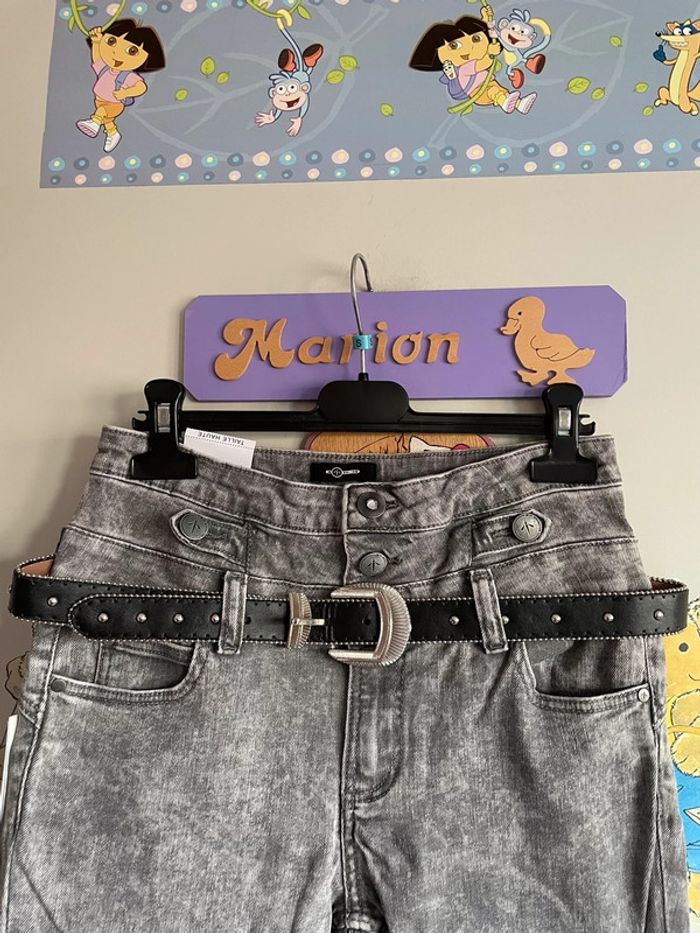 Jean gris taille haute avec ceinture, taille 36, marque Mosquitos