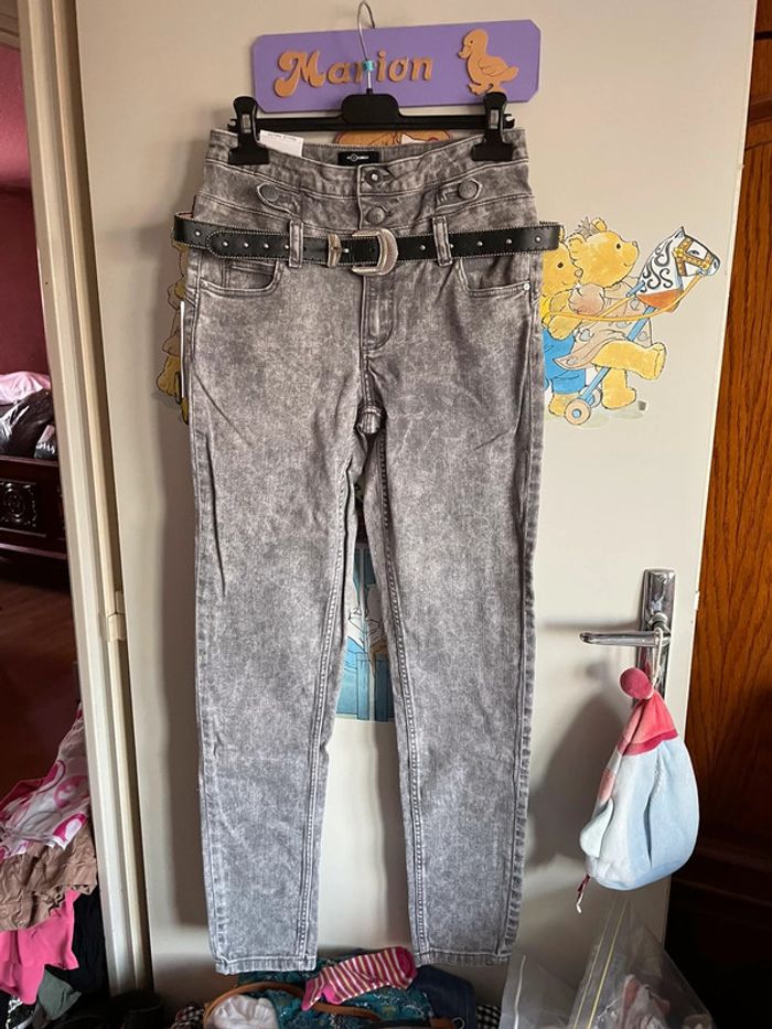 Jean gris taille haute avec ceinture, taille 36, marque Mosquitos - photo numéro 1
