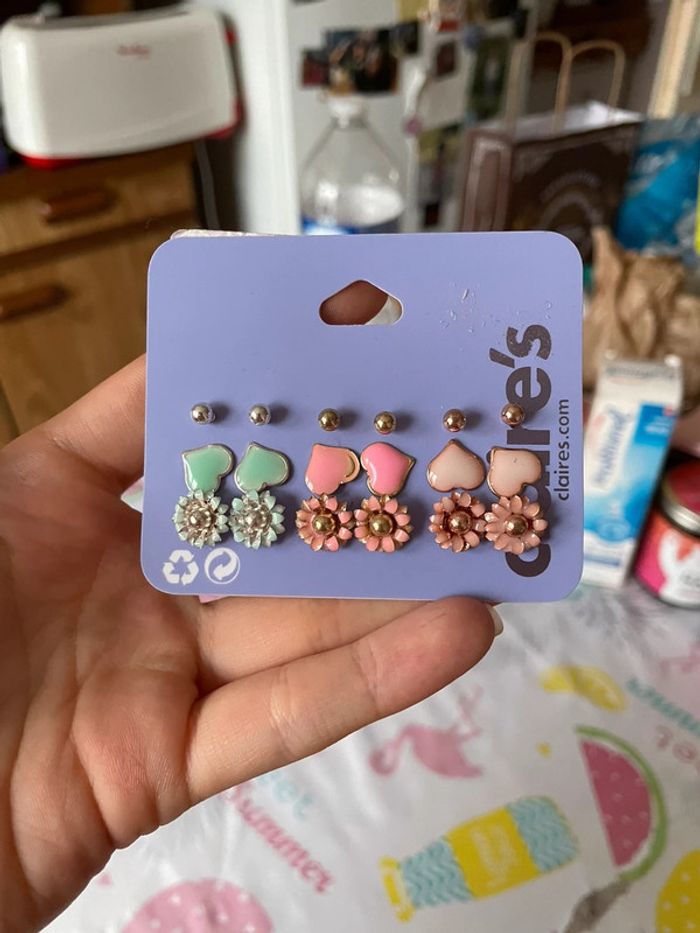 Lot de 9 paires de boucles d’oreilles Claire’s. Petit défaut sur un des cœurs roses voir photo.