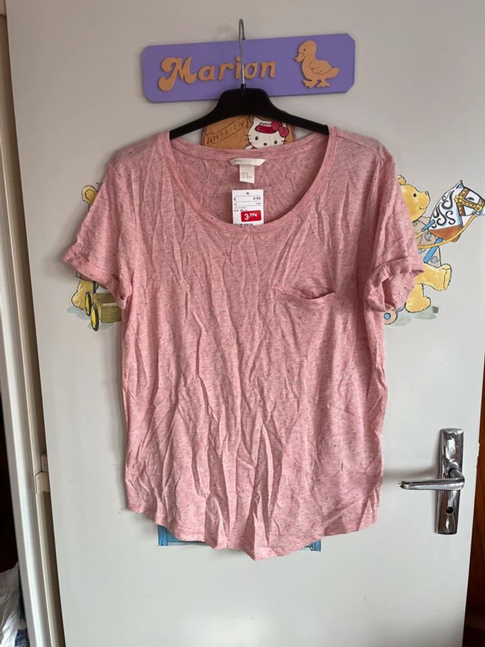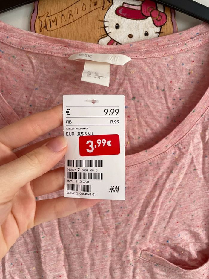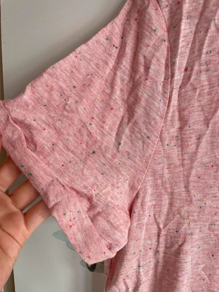 Tee shirt à manches courtes rose à points multicolores, taille Xs, marque H&M.