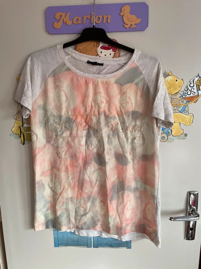 Tee shirt à manches courtes gris à motifs, taille S, marque Kiabi. - photo numéro 1