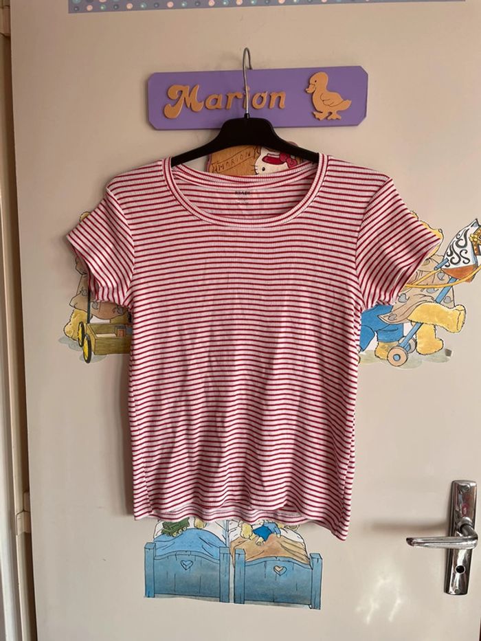 Tee shirt marinière à manches courtes, taille S, marque Kiabi. Mini trou voir photo 2