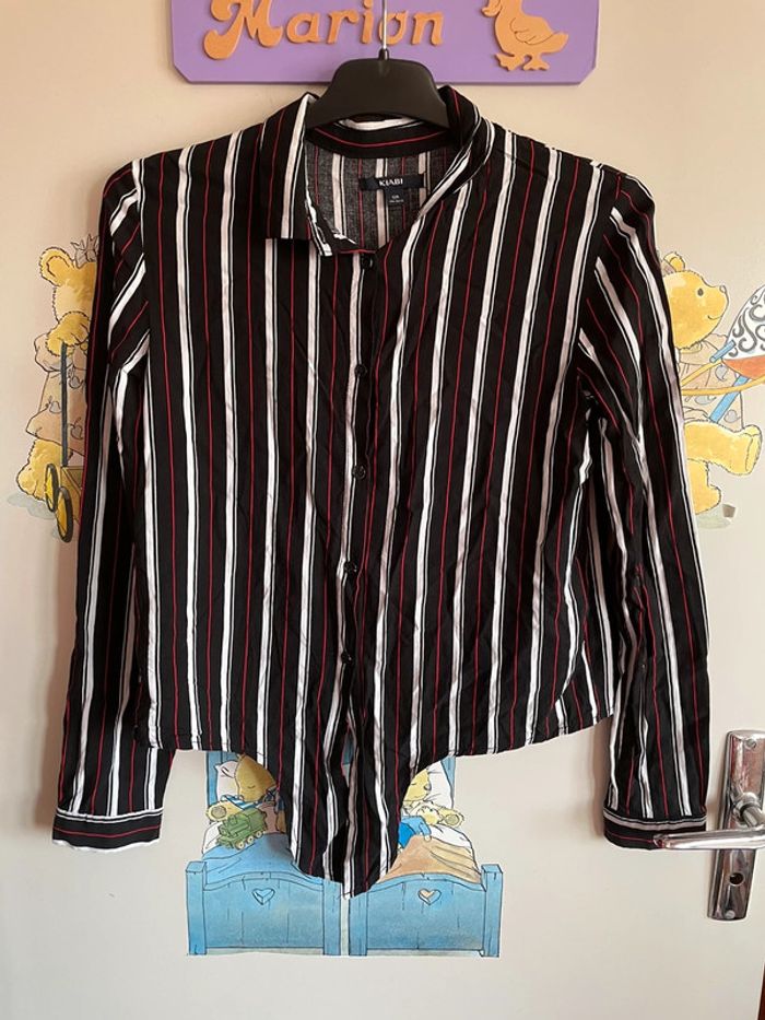 Chemise à manches longues à rayures noires, blanches et rouges, taille 12 ans, marque Kiabi