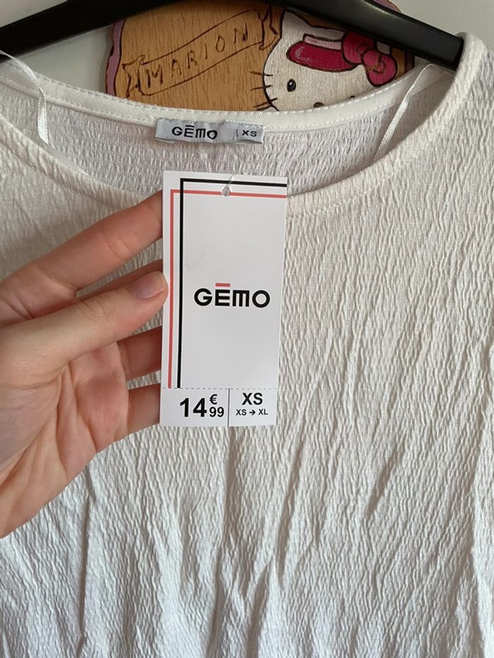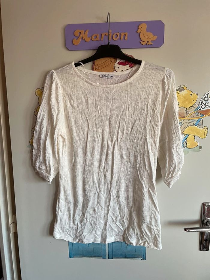 Blouse crème à manches 3/4, taille Xs, marque Gemo.