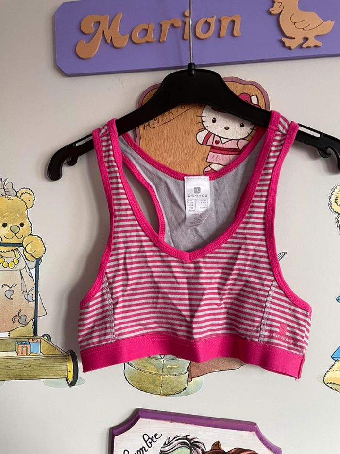 Brassière à rayures roses et grises, taille 8 ans, marque Domyos.