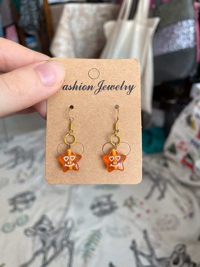 Boucles d’oreilles étoiles oranges.