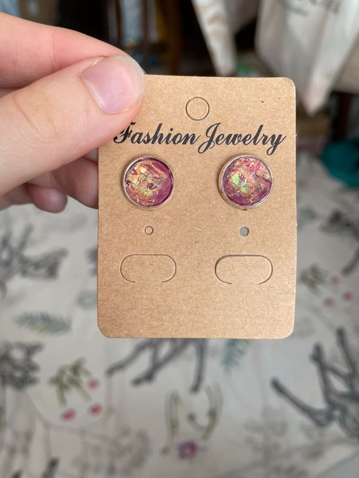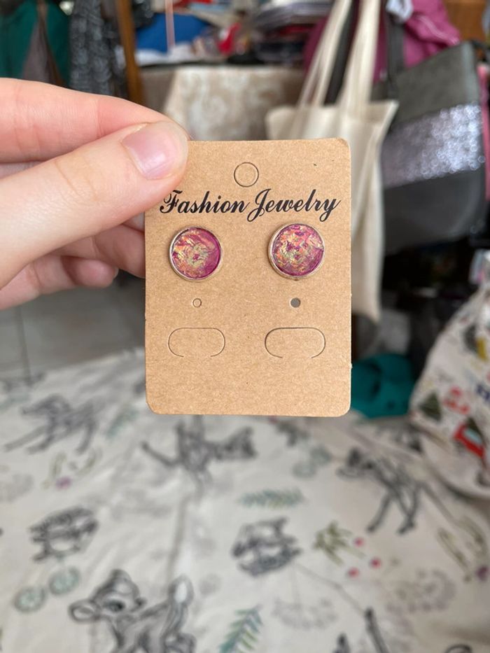 Boucles d’oreilles roses. - photo numéro 2