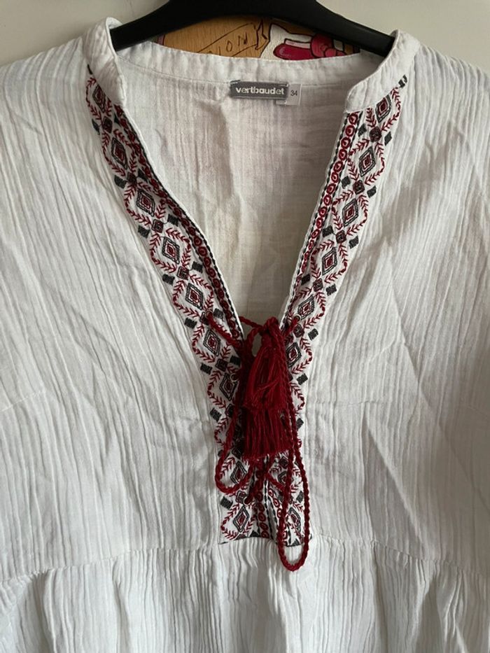 Tunique à manches longues blanche à motifs, taille 34, marque Vertbaudet. - photo numéro 2