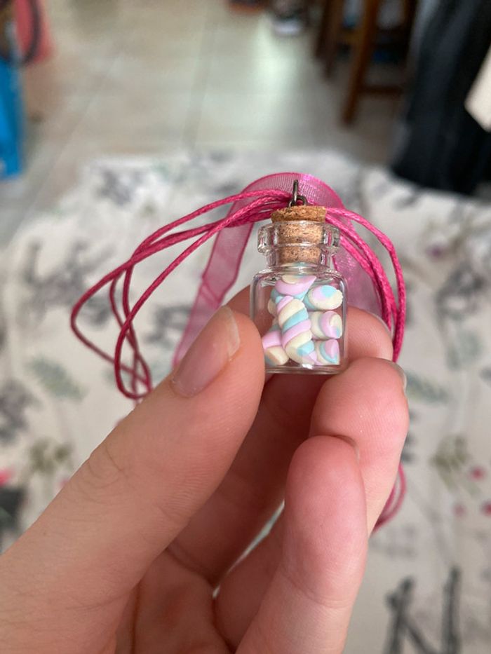 Collier rose fiole avec petites guimauves dedans. - photo numéro 2