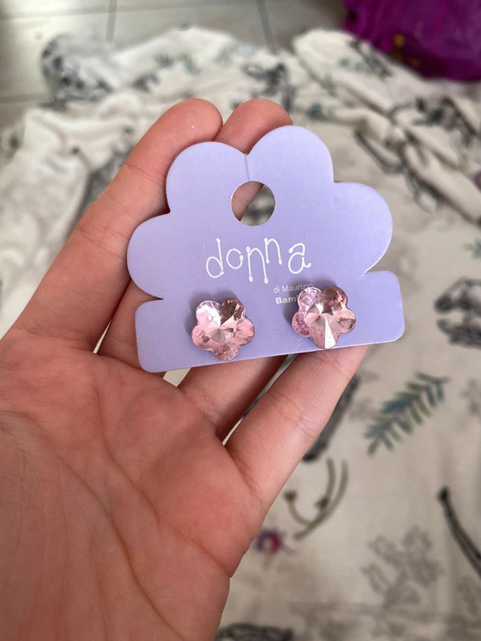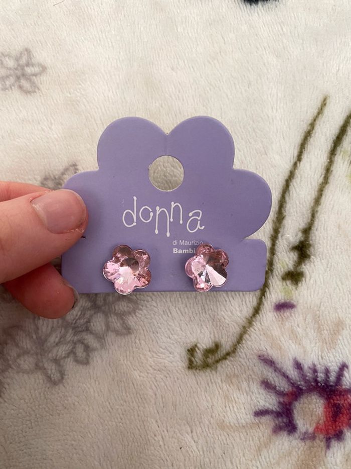 Boucles d’oreilles fleurs roses. - photo numéro 3