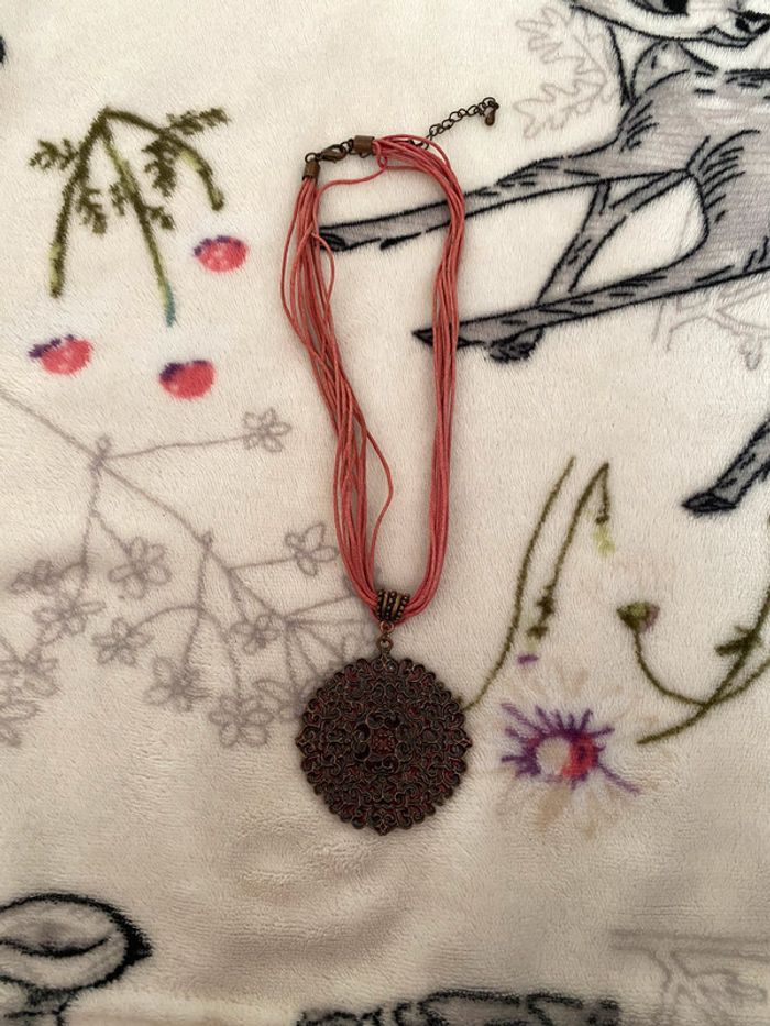 Collier rose avec breloque ronde motifs arabesque. - photo numéro 1