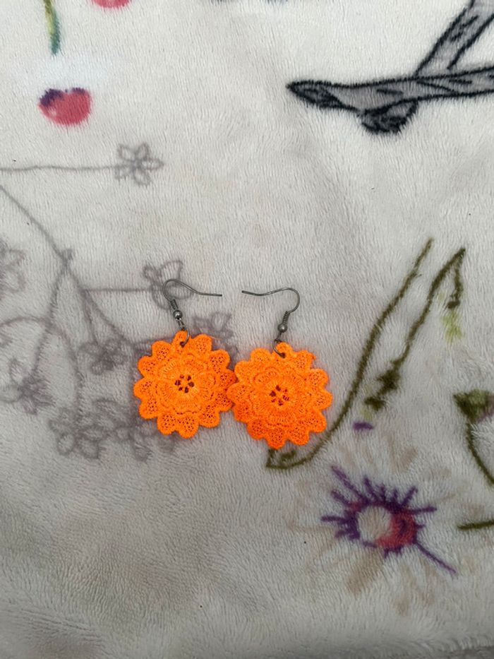 Boucles d’oreilles fleurs oranges.