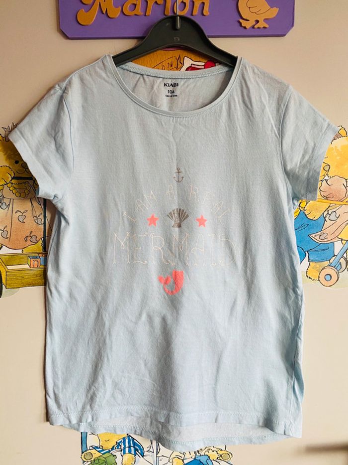 Tee shirt à manches courtes bleu clair à motifs, taille 10 ans, marque Kiabi. - photo numéro 1