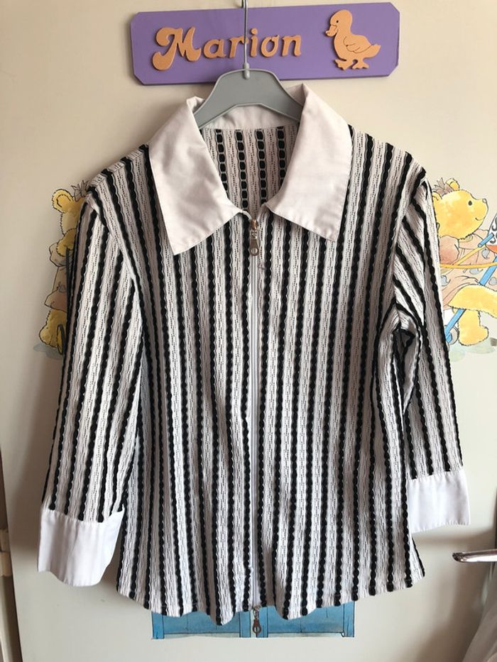 Chemisier à manches 3/4 noir et blanc à rayures, taille 40.