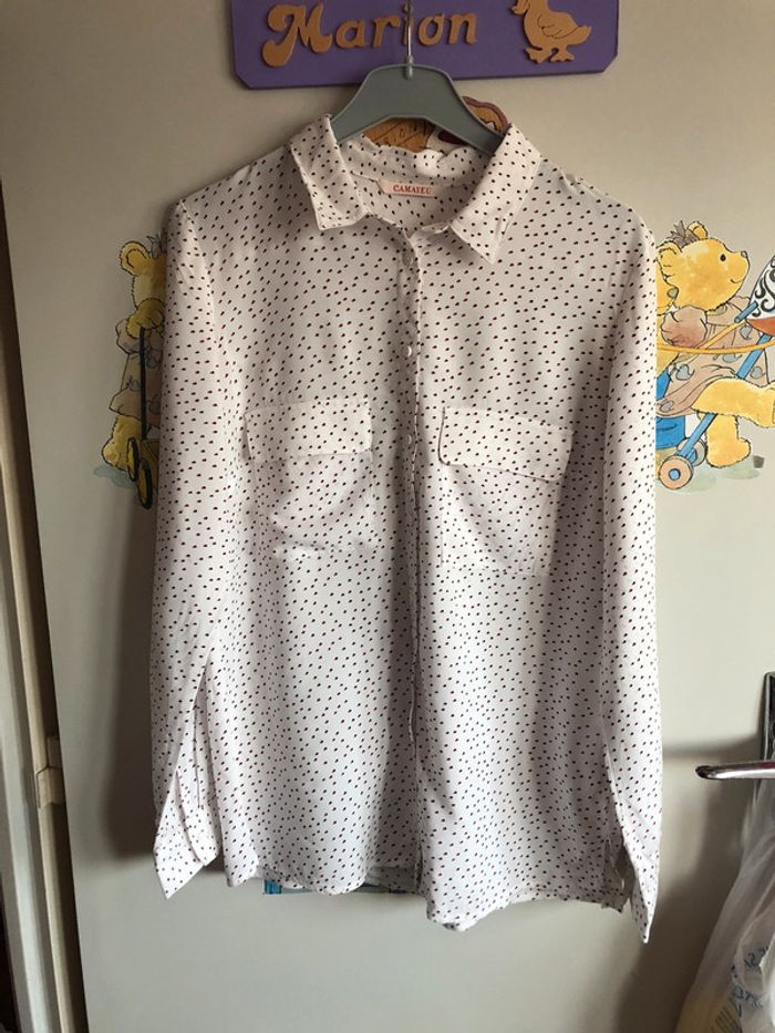 Chemisier à manches longues blanc à motifs, taille 34, marque Camaïeu. - photo numéro 1