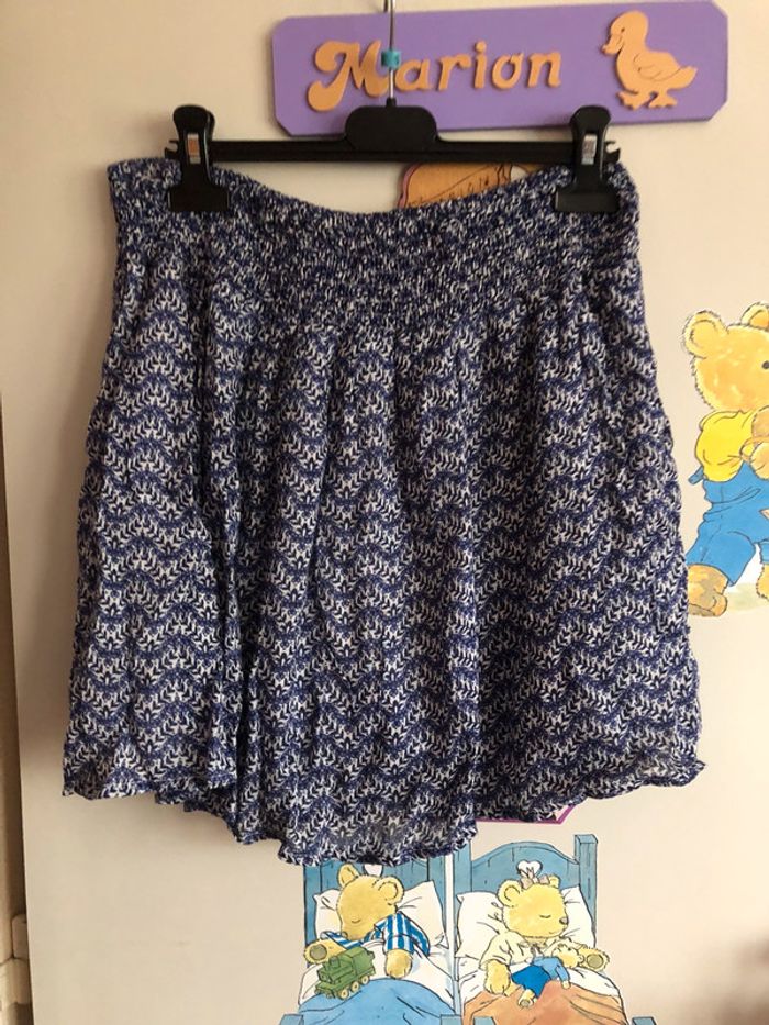 Jupe bleue et blanche à motifs, taille 36, marque Women Only.