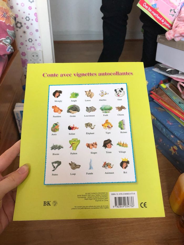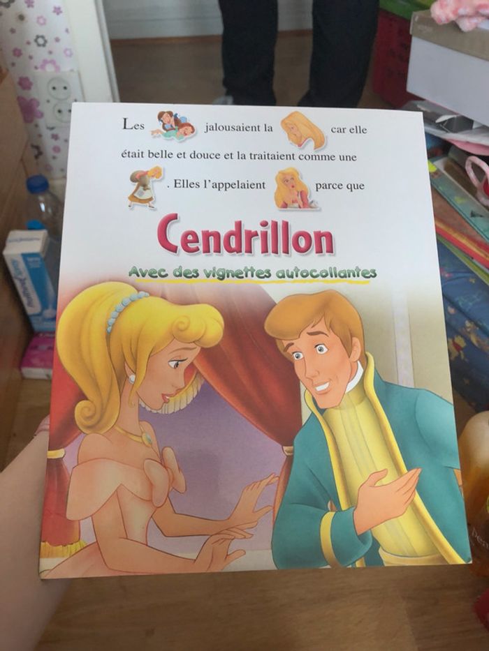 Lot de deux livres Cendrillon et Le livre de la Jungle. Les stickers du livre Cendrillon ont déjà étés collés pour pouvoir compléter l’histoire et la lire.